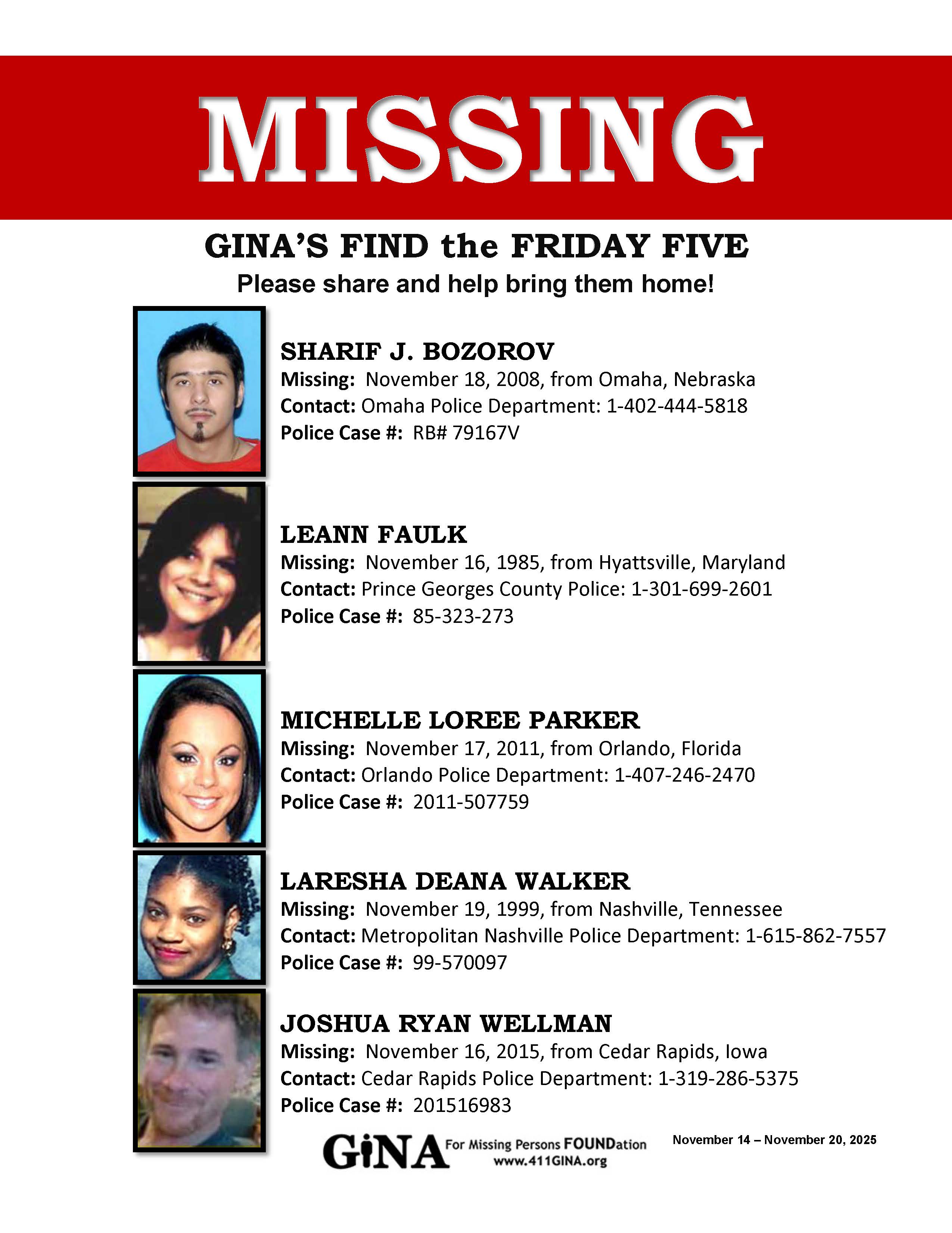 A few Nebraskans with missing loved ones were drawn together through shared grief. We felt a designated day that recognizes our loved ones would give us hope. Nebraska Missing Persons Day LB 1102 was signed into legislation in the spring of 2024. The Second Annual Nebraska Missing Persons Day was held on October 17, 2025 in Lincoln, Nebraska, sponsored by the GINA For Missing Persons FOUNDation.