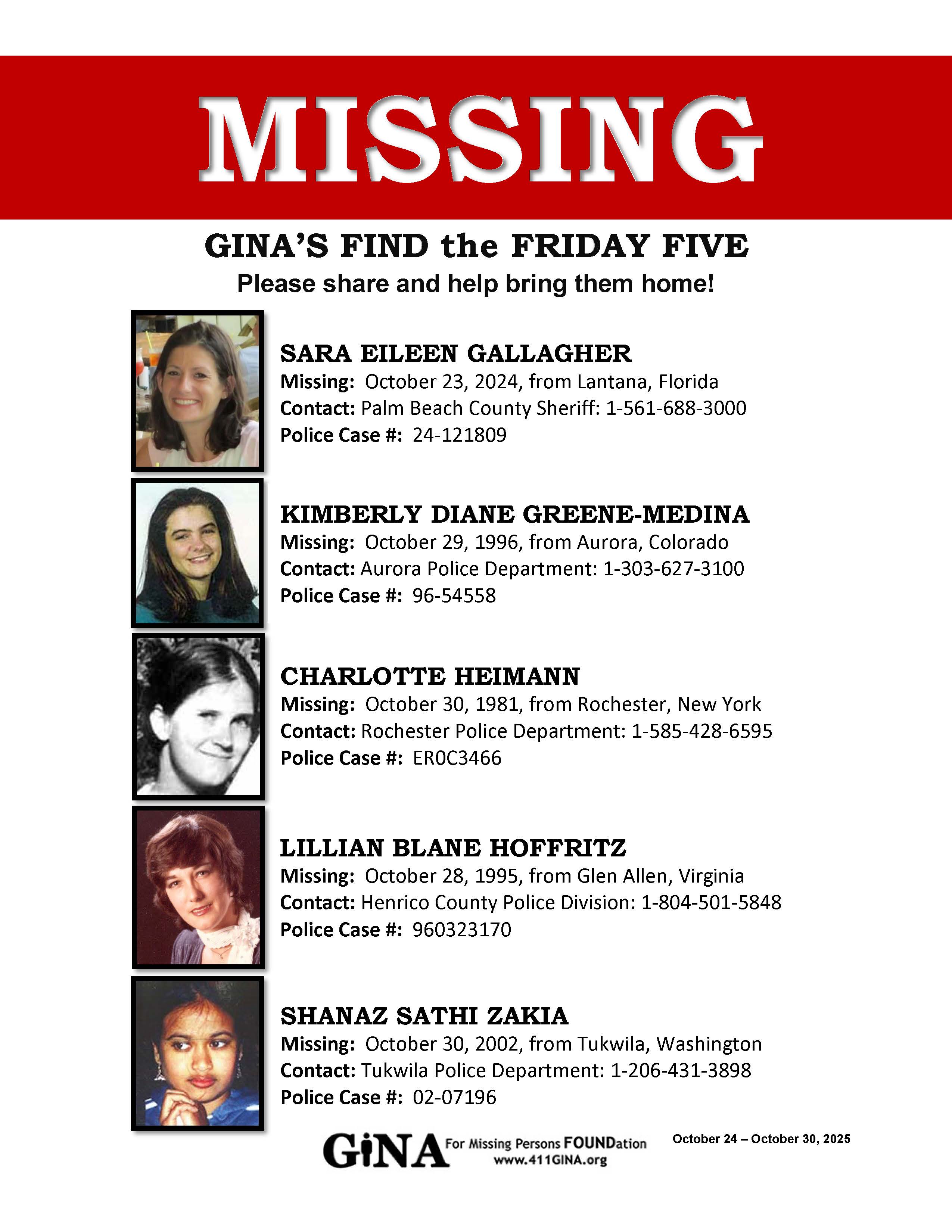 In October 2024, the GINA FOUNDation sponsored the First Annual Nebraska Missing Persons Day. The Second Annual Nebraska Missing Persons Day was held in Lincoln, Nebraska on October 17, 2025 at the State Capitol.