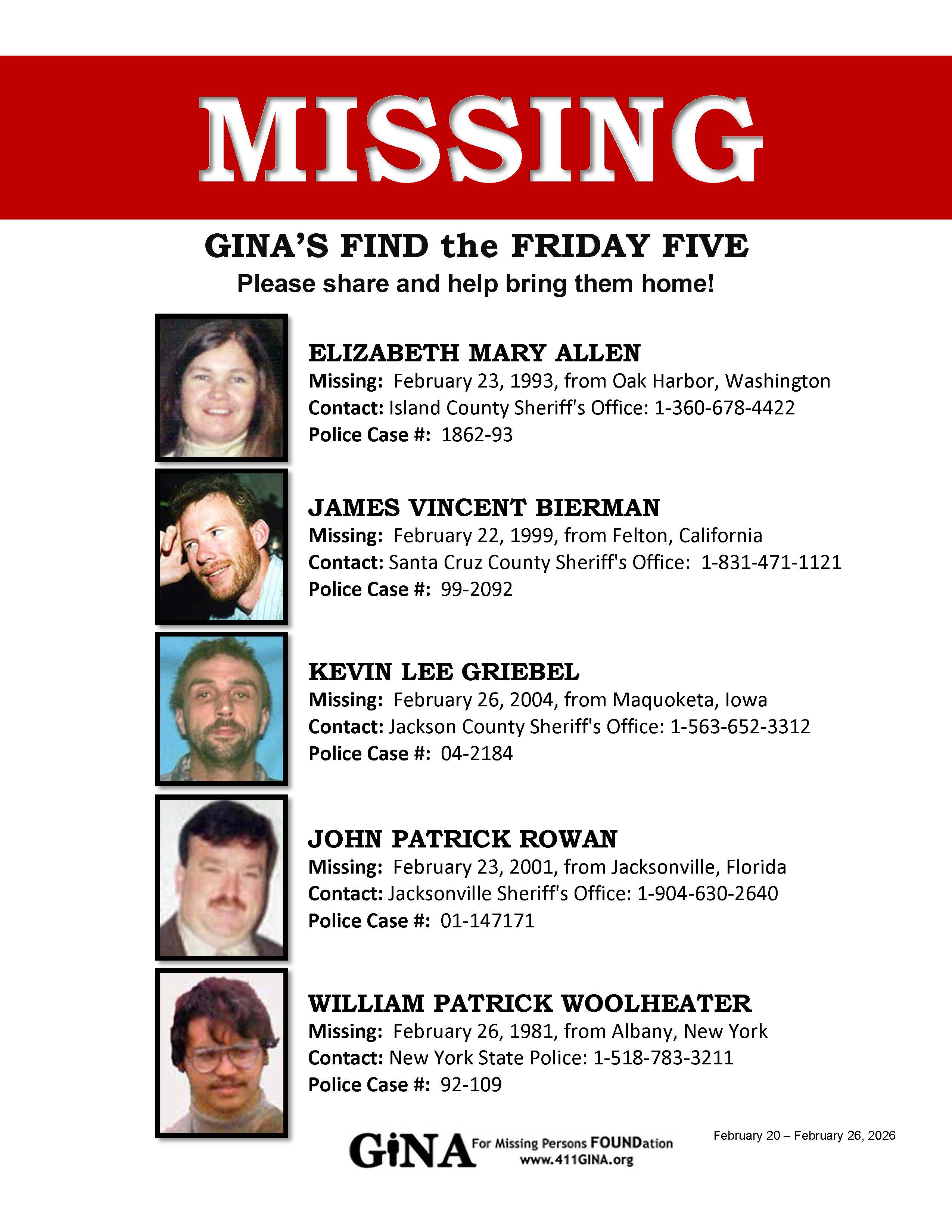 Click on a photo or name to download or print a flyer to share and help FIND them!